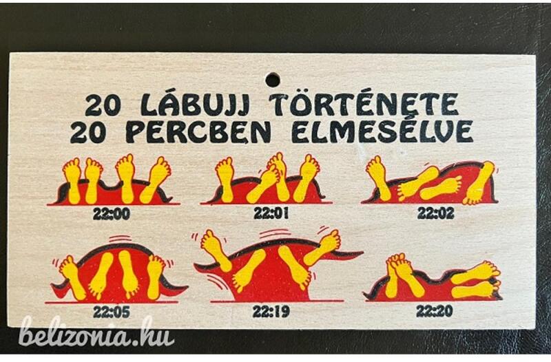 Vicces fatáblaFelirat: 20 lábujj története 20 percben elmesélve. Mérete: 20x10cmAnyaga: fa falra akasztható.