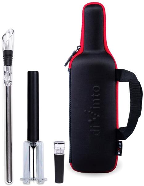 Ez a borkészlet eredeti ajándék, ha meghívást kap valakinek a vacsorájára vagy partijára! Az is egyedi, ha otthon, a borospincében tartod. Az edényeket kiveheted a tokból, és beletehetsz egy üveg bort. A tok a legtöbb palackhoz alkalmas: max. átmérő: 7,5 cm. A készlet tartalma: nyomás alatt álló boros dugóhúzó, vákuumos boros dugó, hűtőrúd és tok. A tok kemény és erős anyagból készült, amely megvédi tartalmát a töréstől. Könnyű és kompakt kialakításának köszönhetően könnyen bepakolható táskába, hátizsákba vagy bőröndbe (35 x 9 cm). *a csomag nem tartalmazza a borosüveget