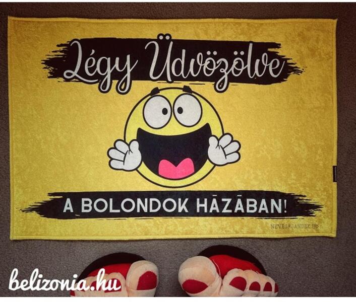 Lábtörlő-Vicces ajándékFelirat: " Légy üdvözölve a bolondok házábaMéretei: 60cm * 40cmVastagsága:4mmAnyaga:100% polyester, csúszásgátlós gumi aljjal. Felülete fényes, bársonyos hatású, a szín árnyalatokban eltérhet a képen látható mintától. Mosógépben mosható, színe, mintája nem fakul. Fürdőszoba kilépőnek is használható. Vicces ajándék minden alkalomra!Vicces mintájú lábtörlő, ami szülinapra, névnapra is tökéletes ajándékötlet, de alkalom nélkül is ajándékozhatod. Barátoknak, rokonoknak is ideális ajándékötlet.