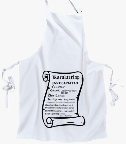 Karakterlap csapattag kötényHa mindenetek a szerepjáték, akkor ezt a legénybúcsús kötényt nektek találtam ki! Keresd meg a csapat többi tagjának kötényját ...