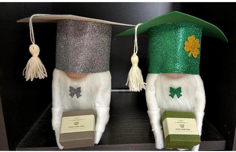 26-30 cm magas prémium minőségű anyagokból, antiallergén tömőanyag felhasználásával készült, csillámos dekorgumi díszekkel  készült  díszített, tüneményes manók, ajándékdobozzal kezükben, ami ékszer vagy pénzátadásra szolgál.