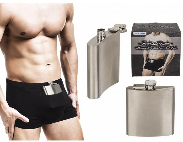 Férfi boxer alsó laposüveggel, amelyből titokban nyelhet néhány kortyot időnként. Legyen önnél biztonságban a két legfontosabb dolog az életben! :D Űrtartalom 175ml Növeli a (nadrágból) kilátszó méretet Univerzális méret A boxer használható a laposüveg nélkül is