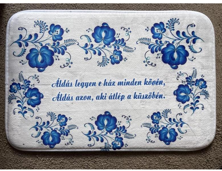 Vicces lábtörlő Áldás legyen e ház minden - Ajándék ötlet családtagoknak -  Vicces ajándék Felirat: Áldás legyen e ház minden kövén, áldás azon, aki átlép a küszöbén. Mérete:60x40cm Anyaga: polyester, csúszásgátlós  aljjal. Felülete fényes, bársonyos hatású, a szín árnyalatokban eltérhet a képen látható mintától. Használata: beltéri  Tisztítása: puha kefével és oldószermentes mosószerrel.